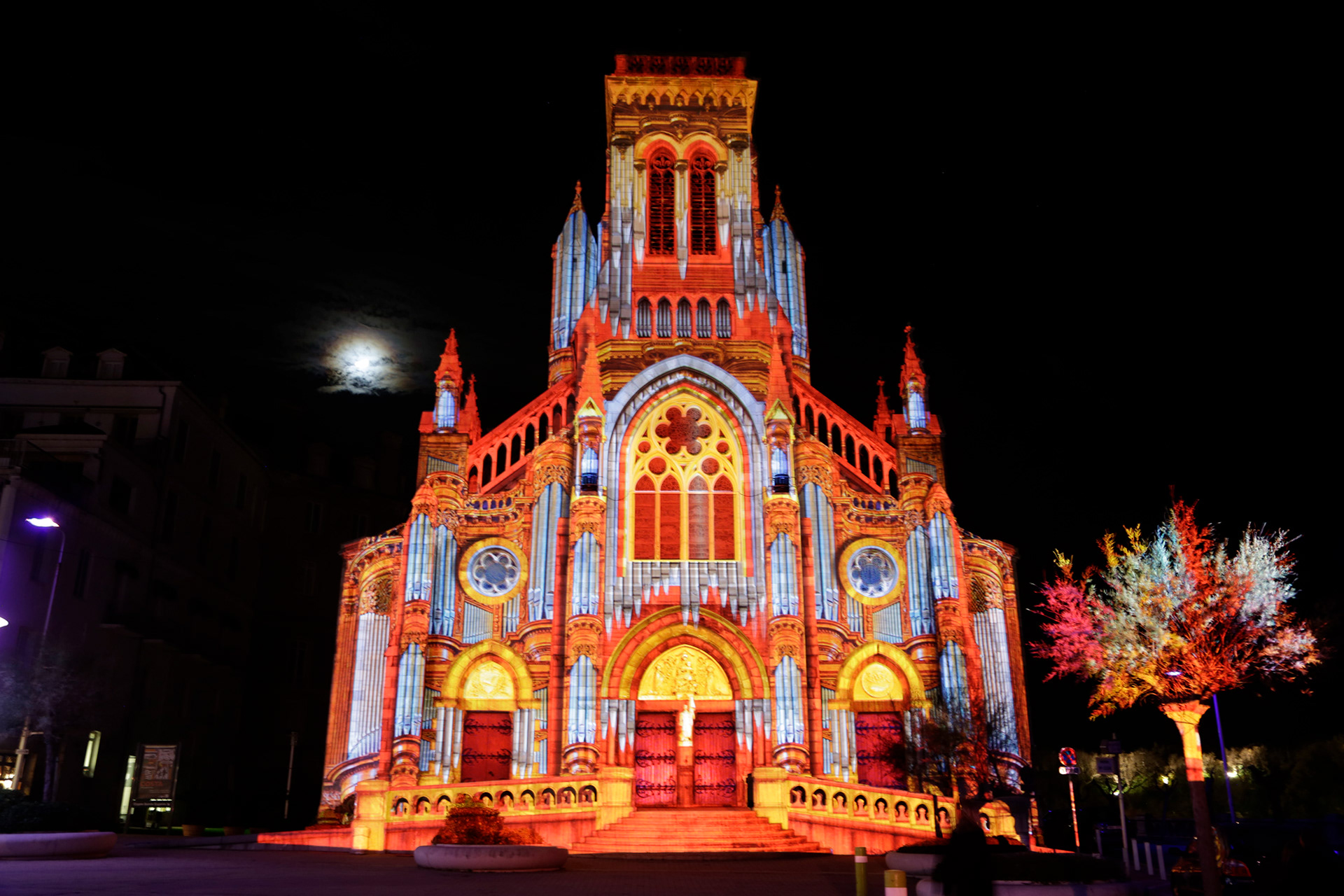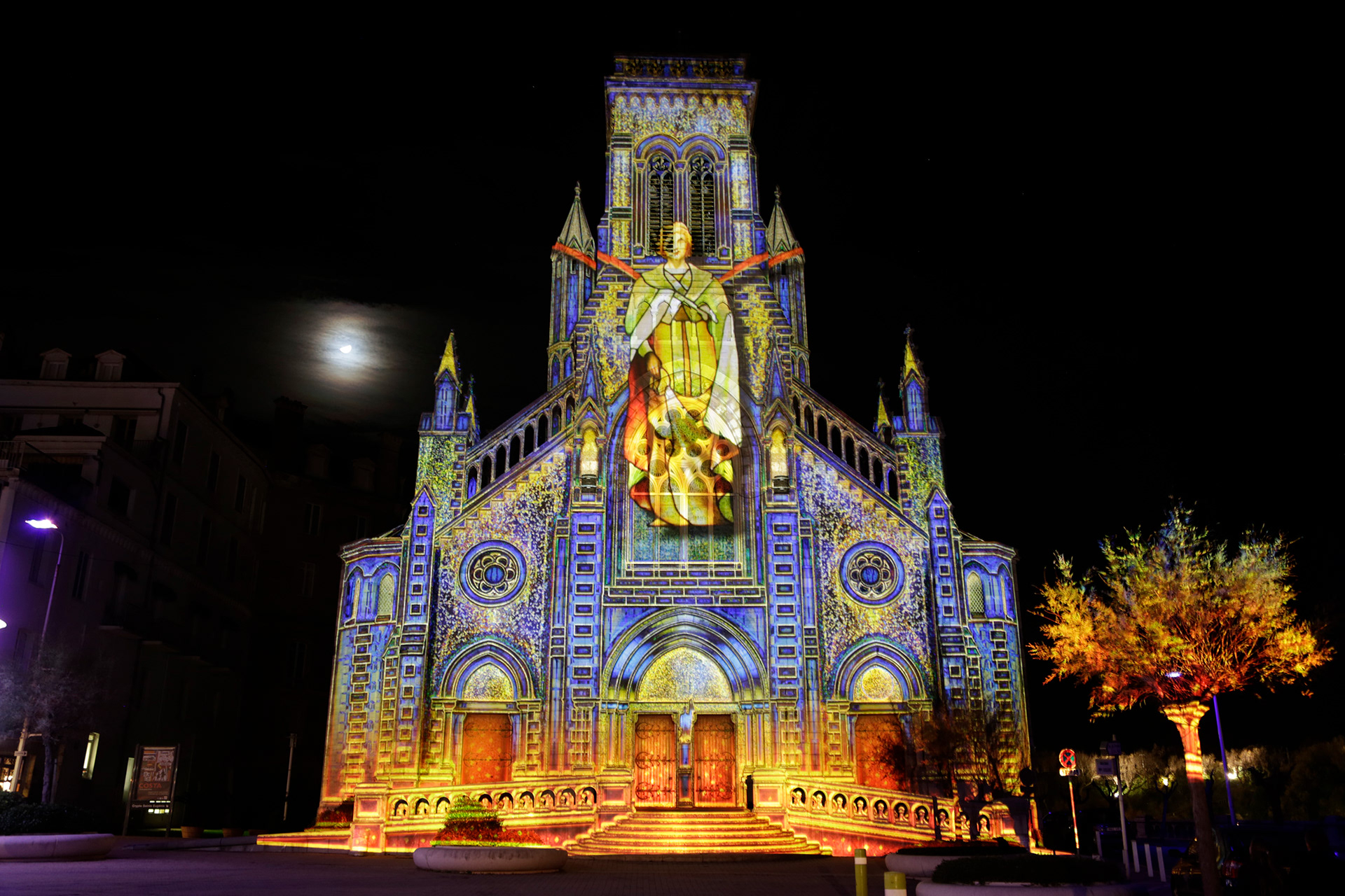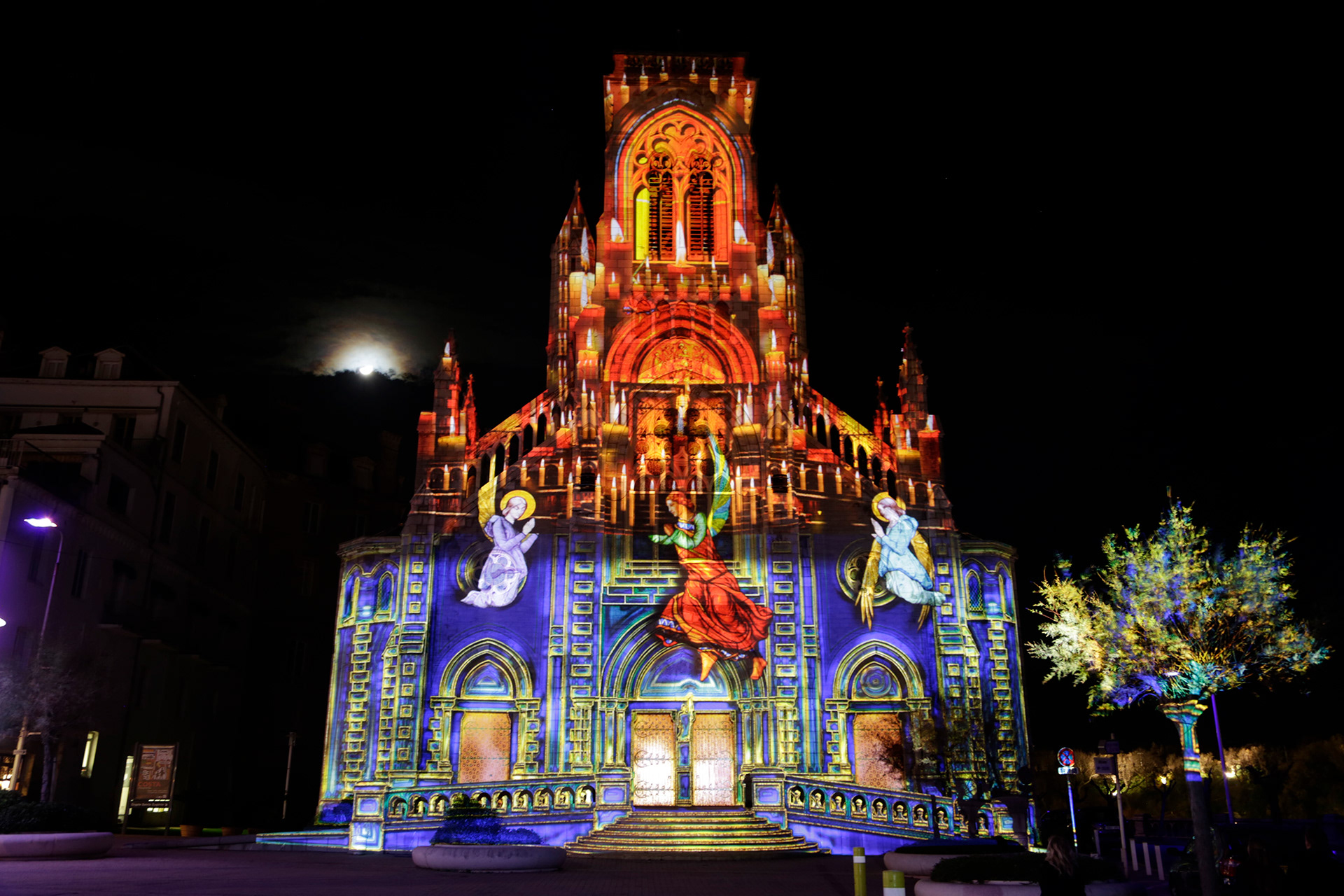 Réalisation d'un mapping vidéo-sonore de 8mn sur l'église Sainte Eugénie.