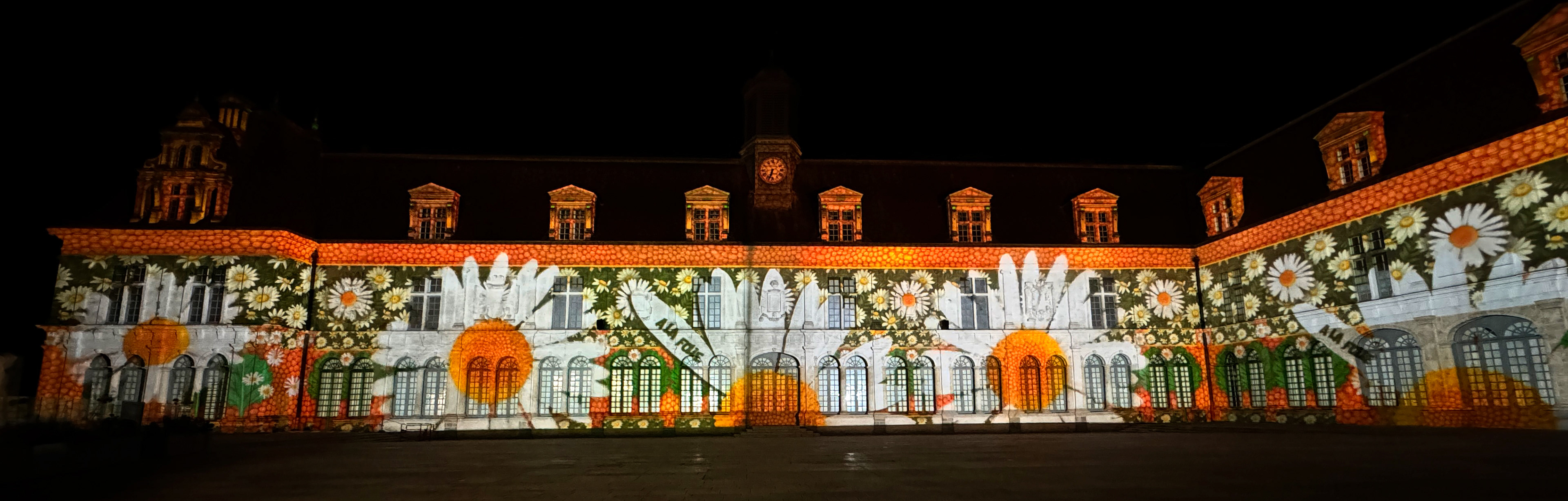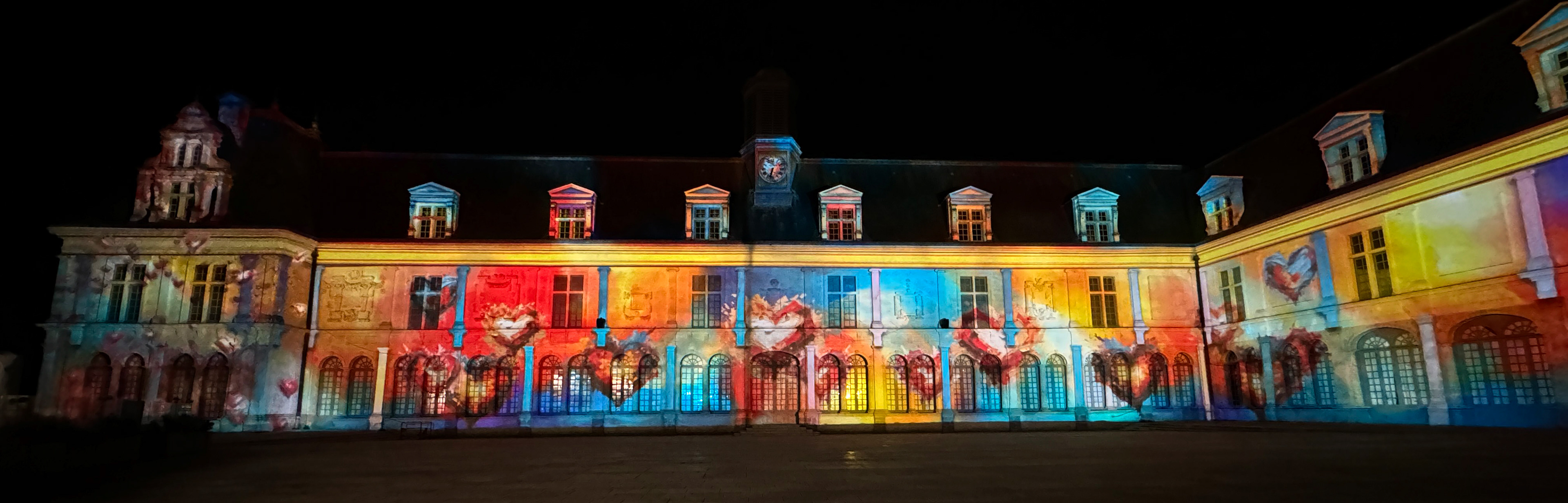 Réalisation d'un spectacle sur la façade du Château-Neuf dans le cadre des Lumières de Laval, une promenade visuelle et sonore sur le thème de l'amour.