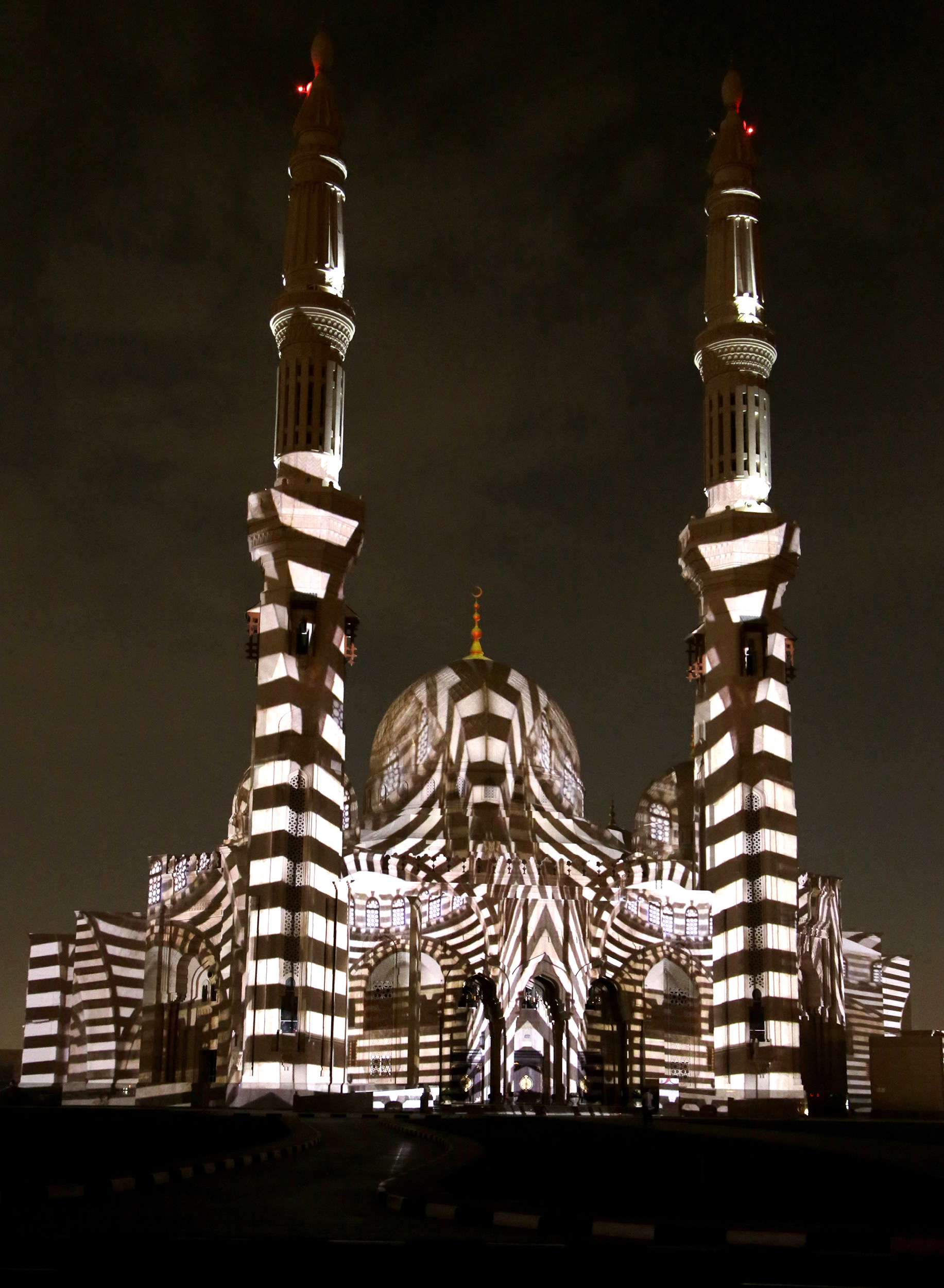 Un habit de lumière et de motifs transforme l'architecture de la mosquée en 360°.